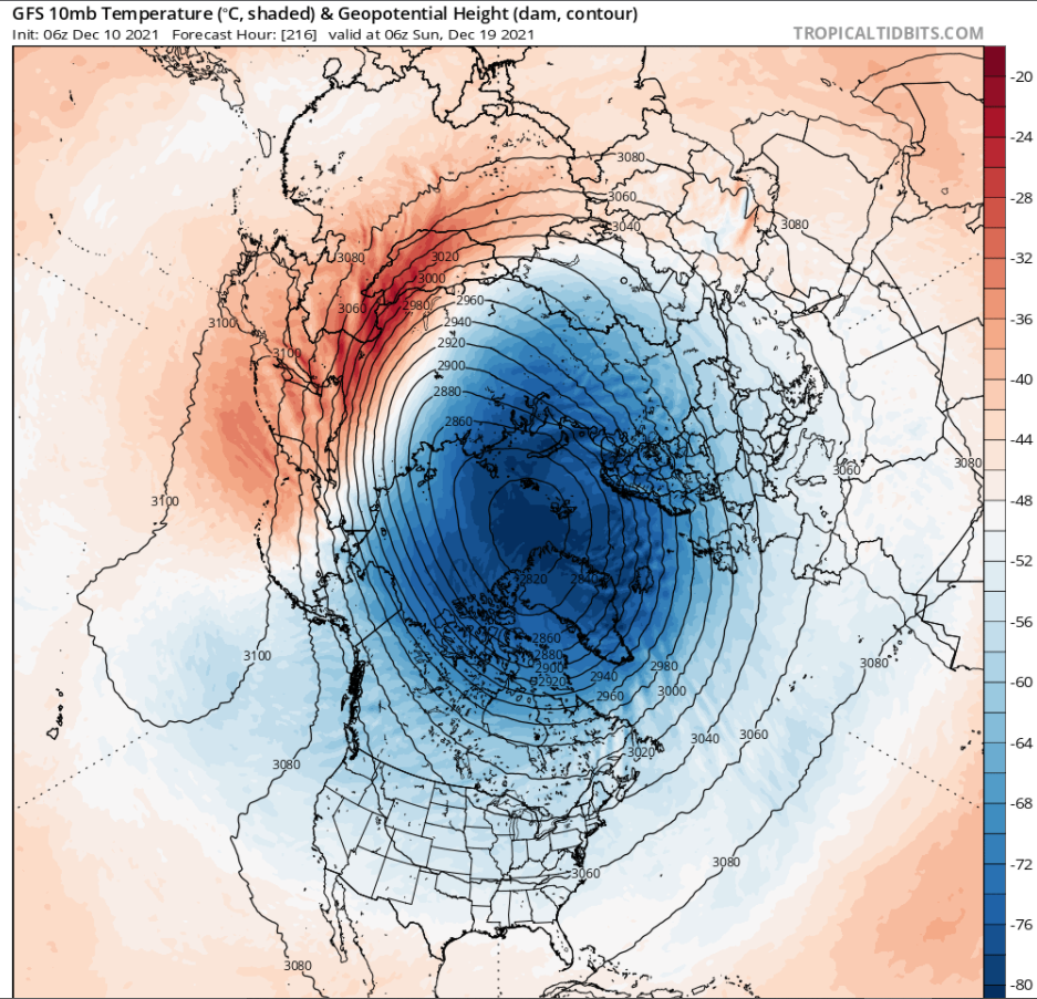 Par contre, à plus long terme on devrait voir les choses s’améliorer. Ce système la semaine prochaine devrait amener un changement de patron météo avec lui, ce qui causera beaucoup de volatilité sur les modèles. Attendez-vous à voir pas mal de changements aux prévisions au cours des prochains jours. Quoi qu’il en soit, avec une North Atlantic Oscillation qui devrait retomber au négatif, cela devrait rimer avec le retour du froid et possiblement d’un corridor de tempête vers la côte est. Aussi, notre vortex polaire stratosphérique devrait commencer à bien se faire brasser la semaine prochaine, ce qui voudrait dire en principe de l’air froid à profusion pour les vacances. Si cela se trouve, la neige devrait venir avec. L’espoir n’est pas perdu pour les noëlistes du ski hors-piste au Québec. Le fond sera peut-être proche, mais à première vue cela serait assez surprenant qu’il n’y ait pas de ski. À suivre !