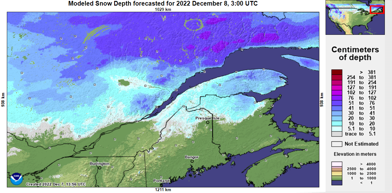 Système complètement échappé par les modèles, on se sera finalement pris un autre bon gâchis avec de la pluie qui est remontée assez loin sur la Rive-Nord et des vents violents. Le système aura finalement entamé le processus de fonte sur les basses altitudes au nord de Québec et sur les sommets du sud de la province. Il est assez difficile de statuer ou la pluie s’est arrêtée exactement en raison du manque de rapports en début de saison, mais cela importe peu étant donné le système d’hier qui a causé des dégâts supplémentaires.