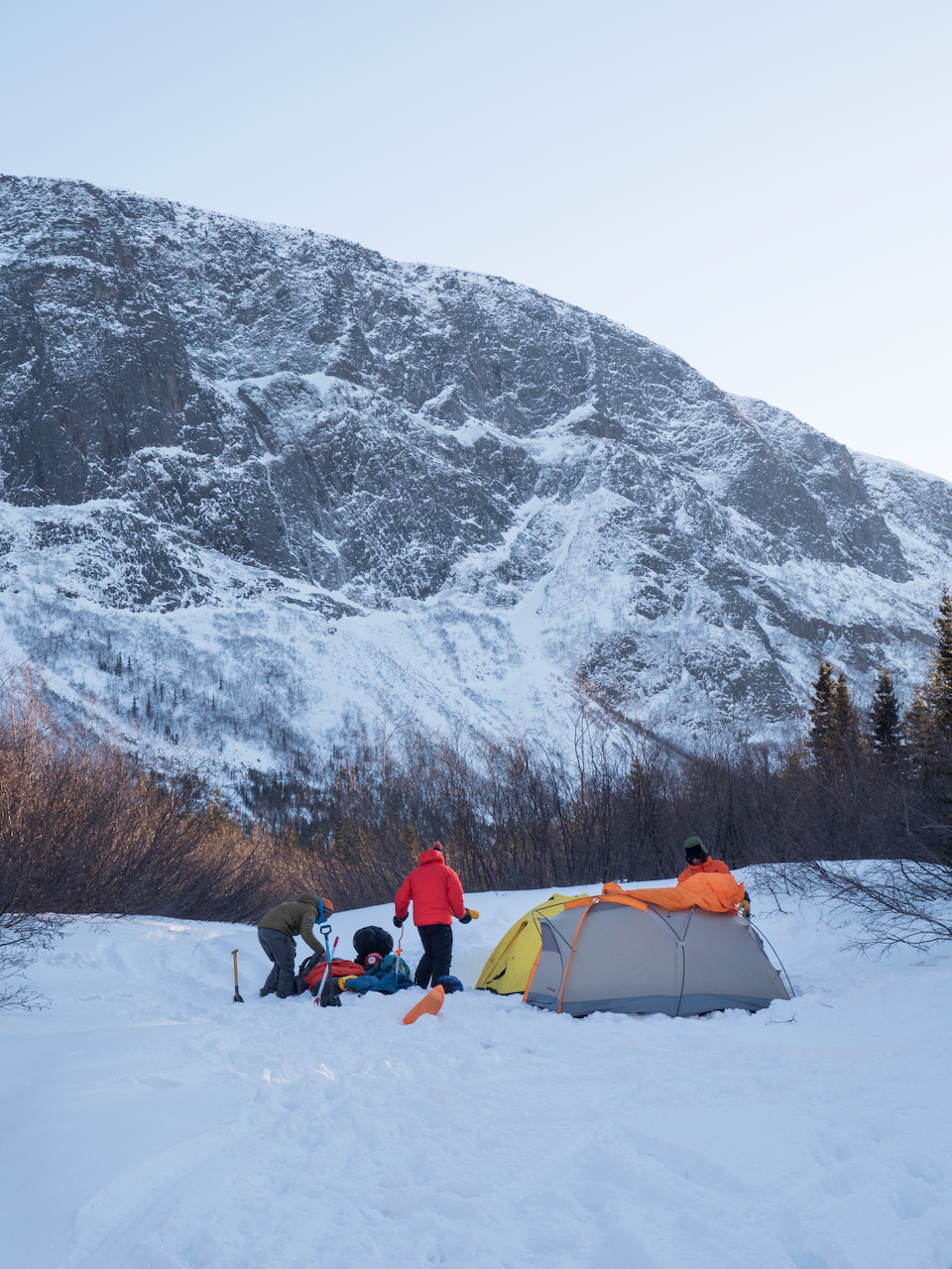 Pour partir à la recherche de lignes skiables isolées sur le territoire, il faut souvent planifier l’implantation d’un camp de base. Pour plusieurs, le camping d’hiver paraît comme une torture, mais il est possible de s’installer (assez) confortablement en ayant les bons équipements et les bonnes connaissances. Voici les bons conseils de deux guides de plein air, Stéphane Gagnon et Hippolyte Mogé, qui excellent en la matière.