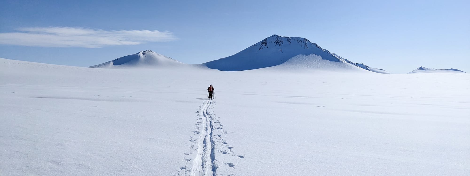 La grande majorité des jours, le soleil est au rendez-vous, l’air est sec et la température autour de -5°C le jour et de -10°C la nuit est idéale pour le ski et le camping d’hiver. Ainsi, ce sont presque toujours les skis aux pieds et le sourire aux lèvres que nous complétons aisément une cinquantaine de kilomètres en quelques jours.