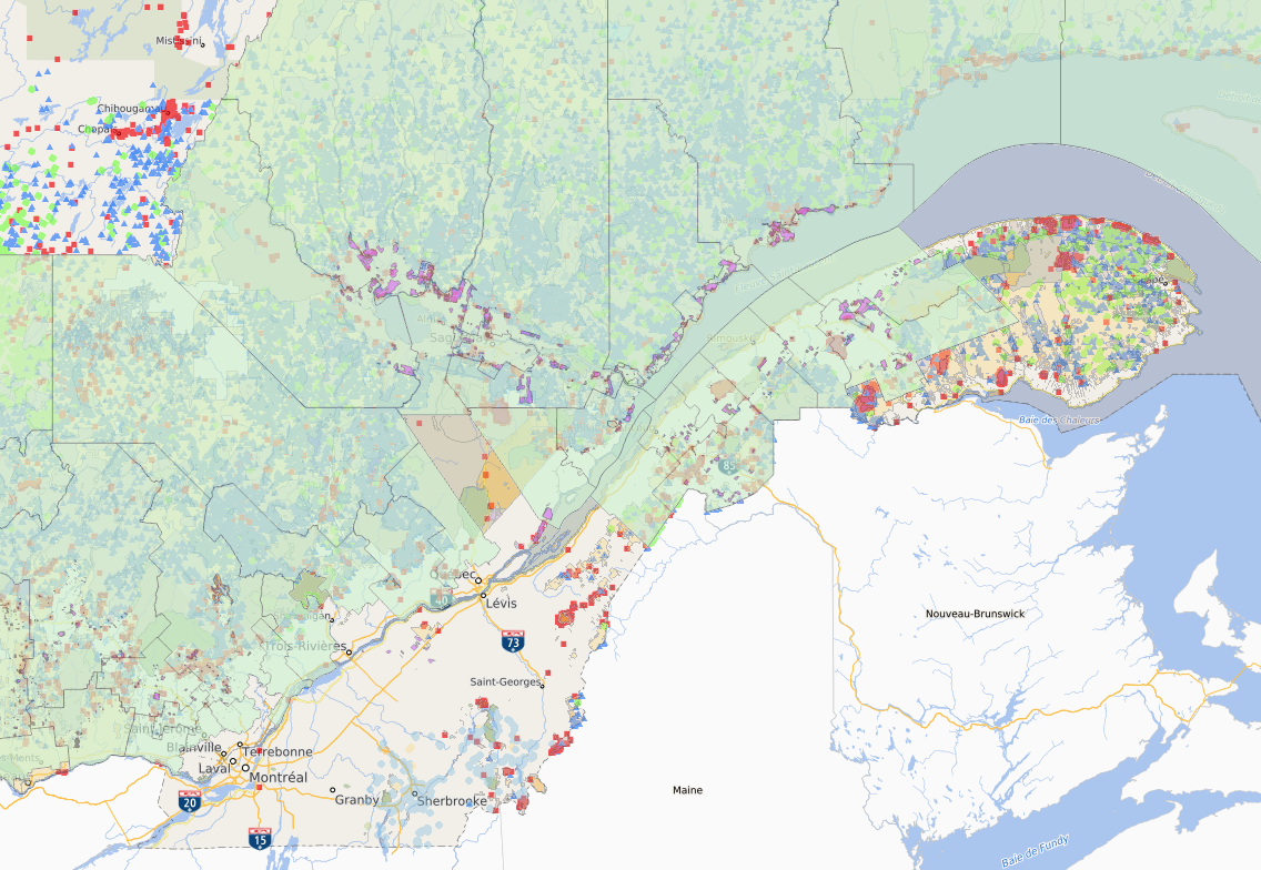 Au sud du fleuve Saint-Laurent, la majorité du territoire est privé.