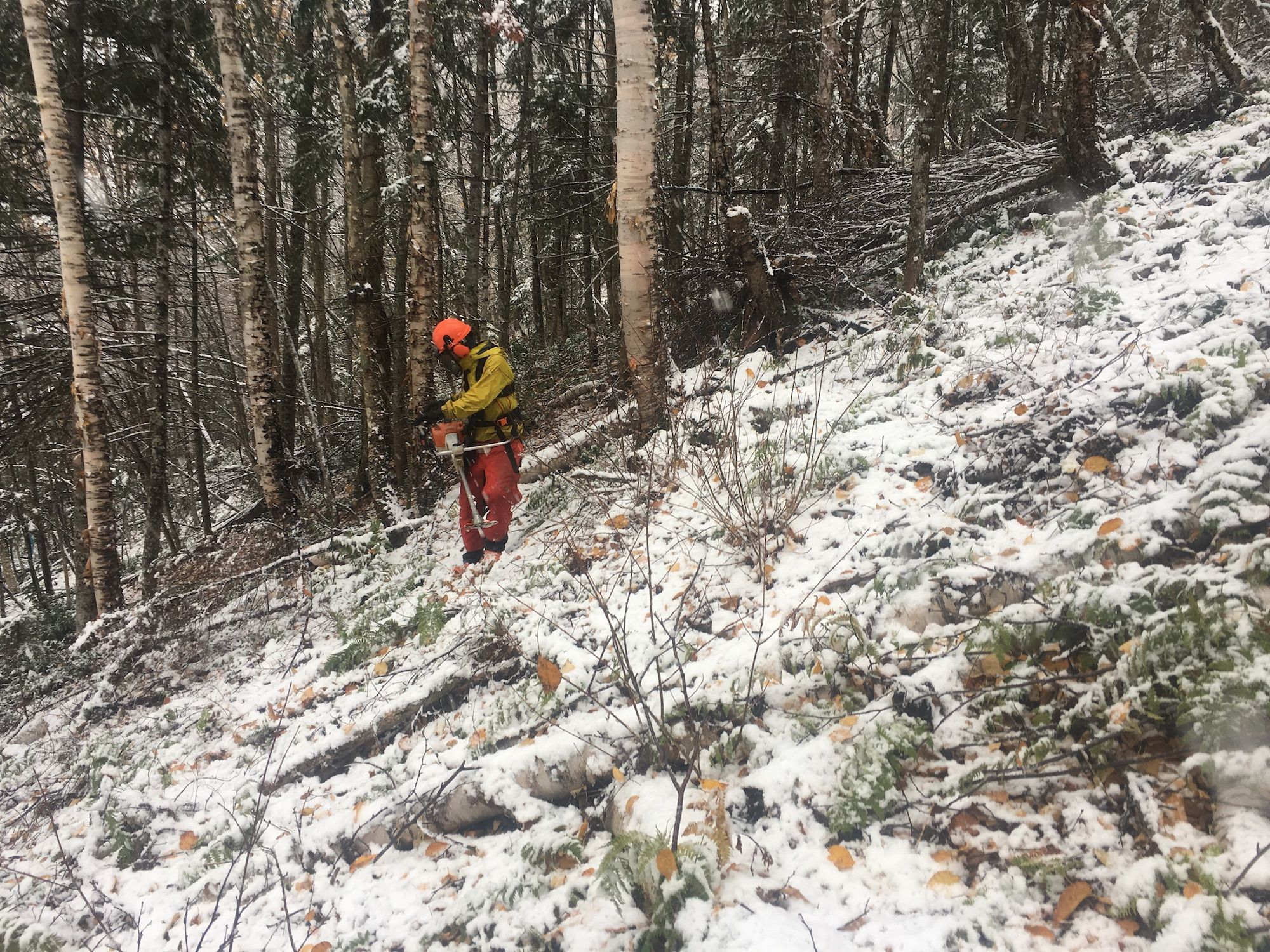 Au lieu de travailler avec d’énormes abatteuses forestières, les aménagements de ski hors-piste sont généralement faits avec des scies à chaine et des débroussailleuses. On y pratique des coupes partielles, pour générer des forêts ouvertes, des sous-bois et des îlots forestiers, tout en laissant des petits arbres en vie pour favoriser la régénération. En bref, le guide permet de découvrir les techniques pour bien aménager la forêt en tenant compte des particularités de chaque peuplement forestier. Au besoin, la FQME fournit également l’aide d’un ingénieur forestier, une expertise obligatoire d’un point de vue légal au Québec, pour aménager la forêt, que ce soit sur un terrain privé ou sur les terres publiques.