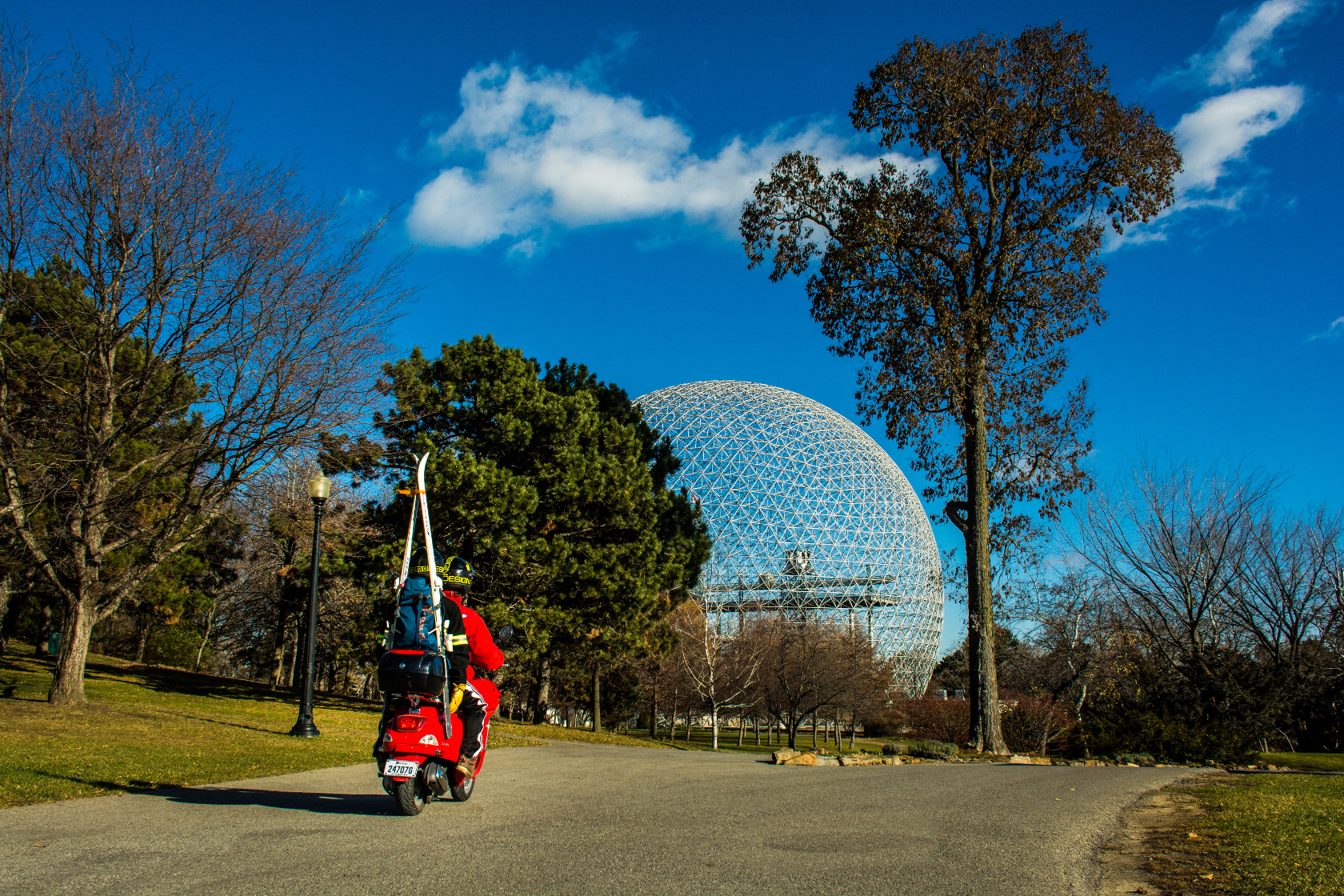 En attendant la première vraie neige, nos aventuriers EstSkieurs en profitent pour tester matériel (skis Rossignol tri-core), moyen de transport (Vespa GTS Super 125ie) et pratiquer quelques virages. Les tests ont passé avec succès en conditions automnales. Reste à savoir si tout cet équipement sera assez fiable en conditions hivernales. On vous laisse en juger!